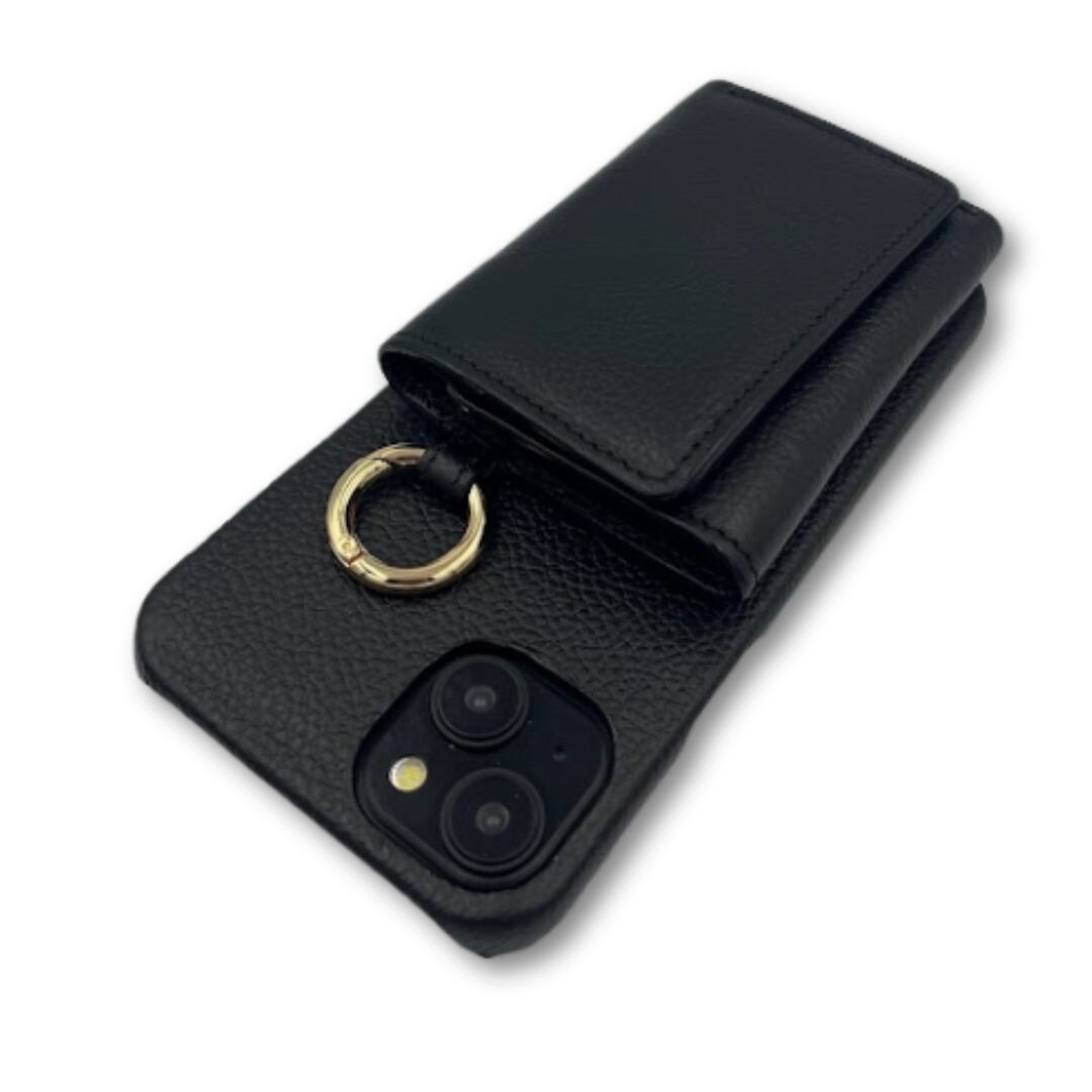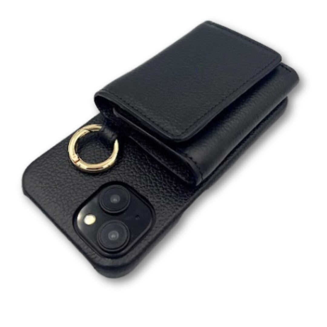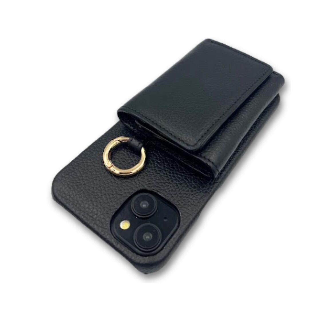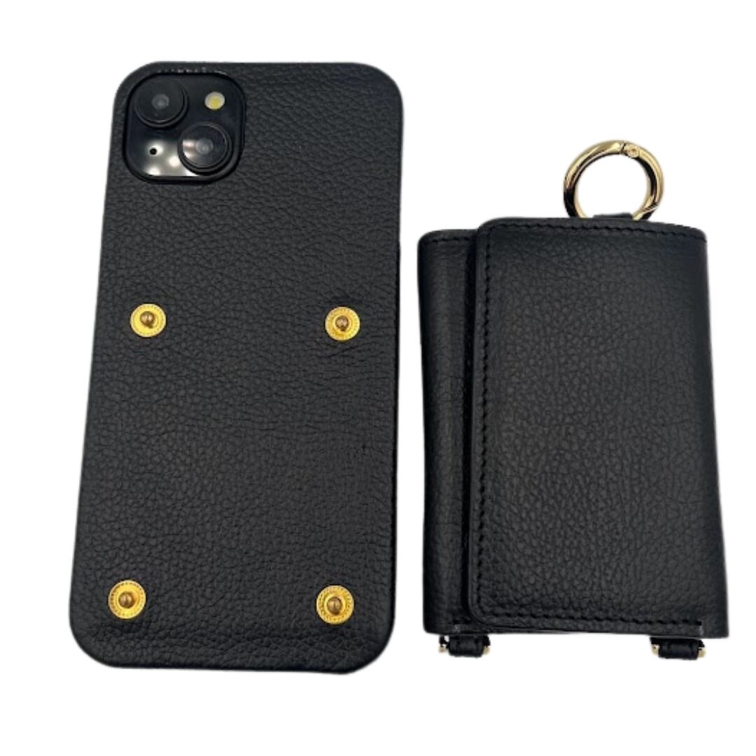 iPhone15 財布 付き ケース ブラック