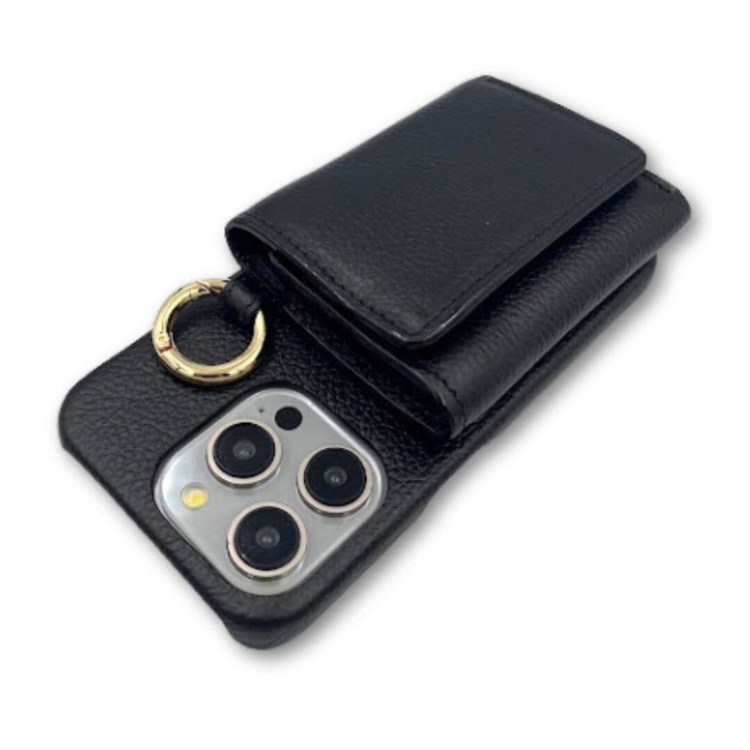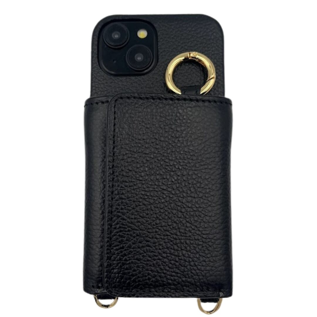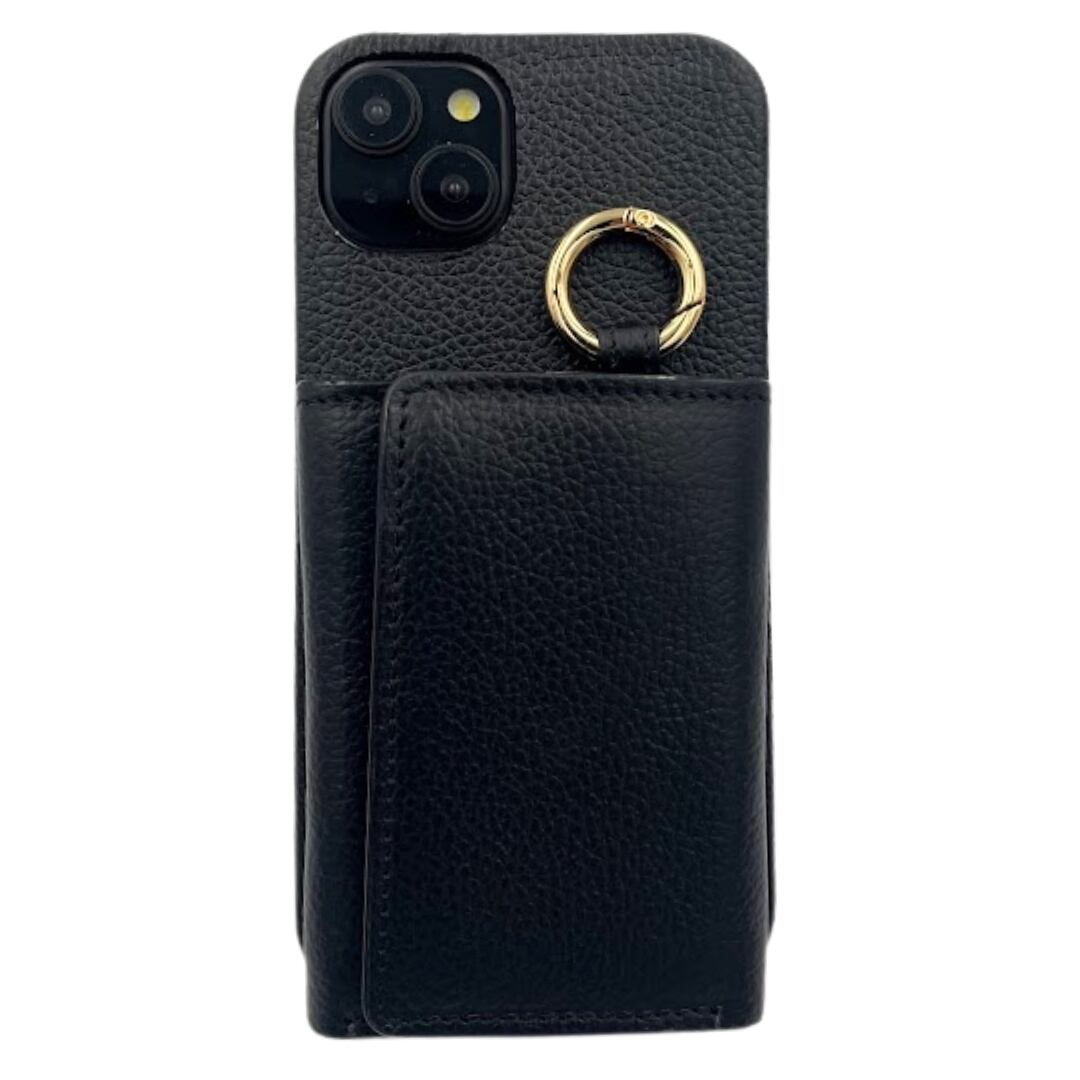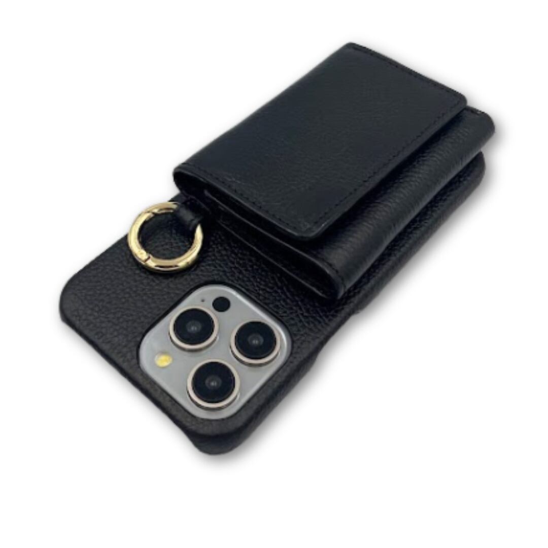 iPhone15 財布 付き ケース ブラック